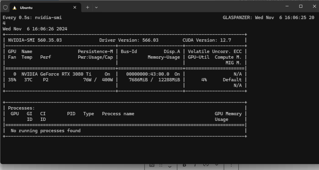 nvidia-smi, um sicherzustellen, dass alles ordnungsgemäß funktioniert